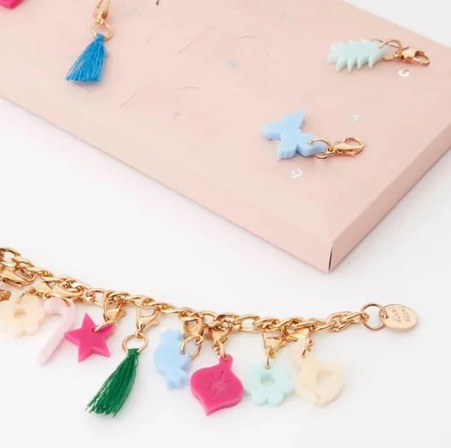 - The charms include acrylic shapes (butterflies, heart, star, moon, flowers and more), colorful tassels and bells